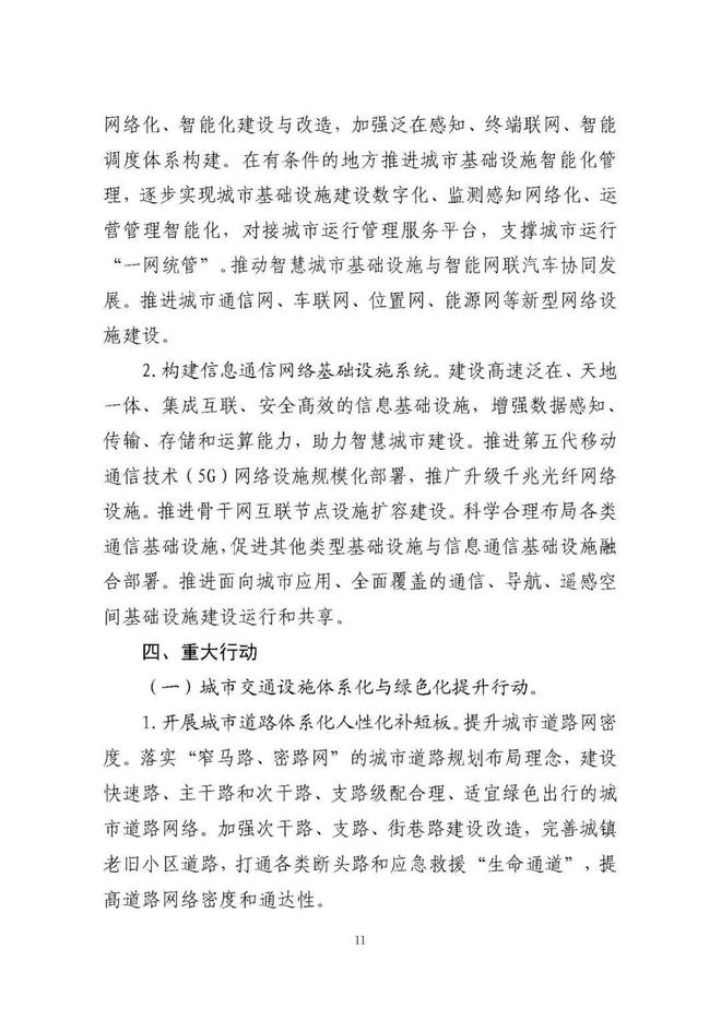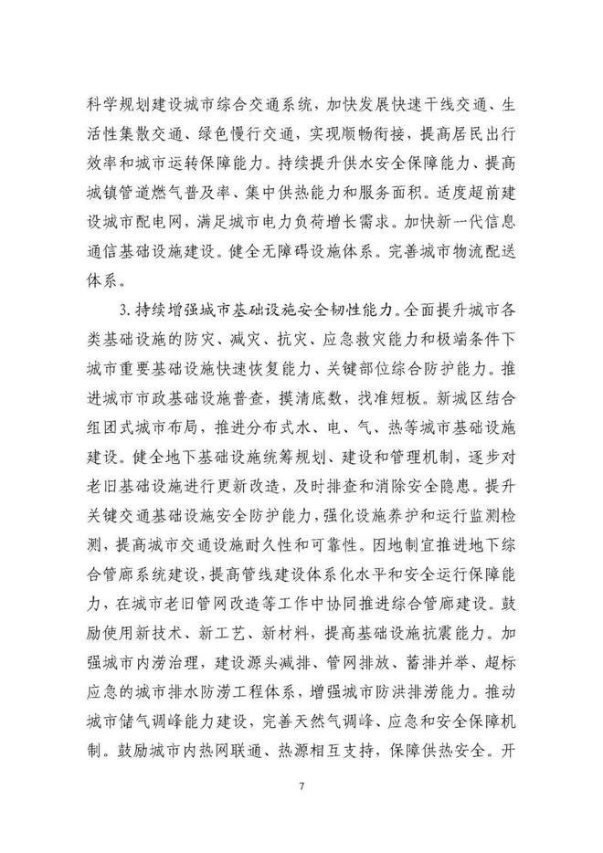 《規(guī)劃》圍繞構(gòu)建系統(tǒng)完備、高效實用、智能綠色、安全可靠的現(xiàn)代化基礎設施體系,提出4方面重點任務。一是推進城市基礎設施體系化建設,增強城市安全韌性能力。二是推動城市基礎設施共建共享,促進形成區(qū)域與城鄉(xiāng)協(xié)調(diào)發(fā)展新格局。三是完善城市生態(tài)基礎設施體系,推動城市綠色低碳發(fā)展。四是加快新型城市基礎設施建設,推進城市智慧化轉(zhuǎn)型發(fā)展。