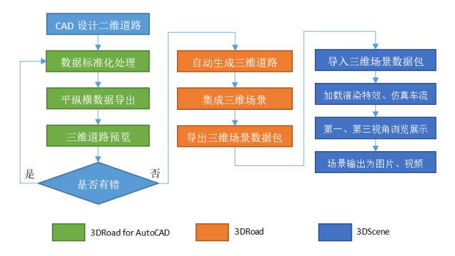 三維道路設計方案可視化流程,如下圖所示: