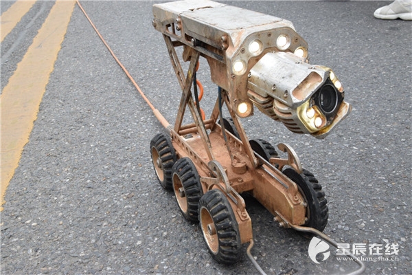 “前頭是個攝像頭,能360度旋轉進行拍攝,緊挨著攝像頭的位置有4個大燈。”劉燕軍介紹,機器人的中間位置有個升降架,這便于探測不同高度的下水井,機器人拖著的一條“尾巴”則是連接器,將探測到的畫面形成影像傳輸?shù)诫娔X中。據(jù)了解,目前長沙縣已有20臺左右這樣的管道機器人在作業(yè),大力提升了工作效率。