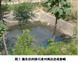 3、服務(wù)區(qū)場地技術(shù)層面存在的問題,一是運(yùn)營中產(chǎn)生的廢棄物(包括廢水、生活垃圾)缺少必要的配套處理設(shè)施,導(dǎo)致服務(wù)區(qū)周邊污染;二是場地排水缺乏設(shè)計(jì),由于區(qū)內(nèi)硬質(zhì)地面多,暴雨時(shí)容易造成局地暴雨徑流,而雨水本可以充分利用,彌補(bǔ)服務(wù)區(qū)自打井時(shí)常供水不足的問題,這在干旱、半干旱地區(qū)尤為重要(如圖2所示)。