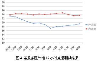 5、服務(wù)區(qū)建筑設(shè)計(jì)技術(shù)層面存在的問題,就是基本上未考慮“四節(jié)一環(huán)保”的要求,因此根本上達(dá)不到國家《公共建筑節(jié)能設(shè)計(jì)標(biāo)準(zhǔn)》規(guī)定節(jié)能50%的要求,這從我們在實(shí)地調(diào)研中對幾個(gè)服務(wù)區(qū)綜合樓的熱工測試結(jié)果(如圖4所示)可以看得出來。