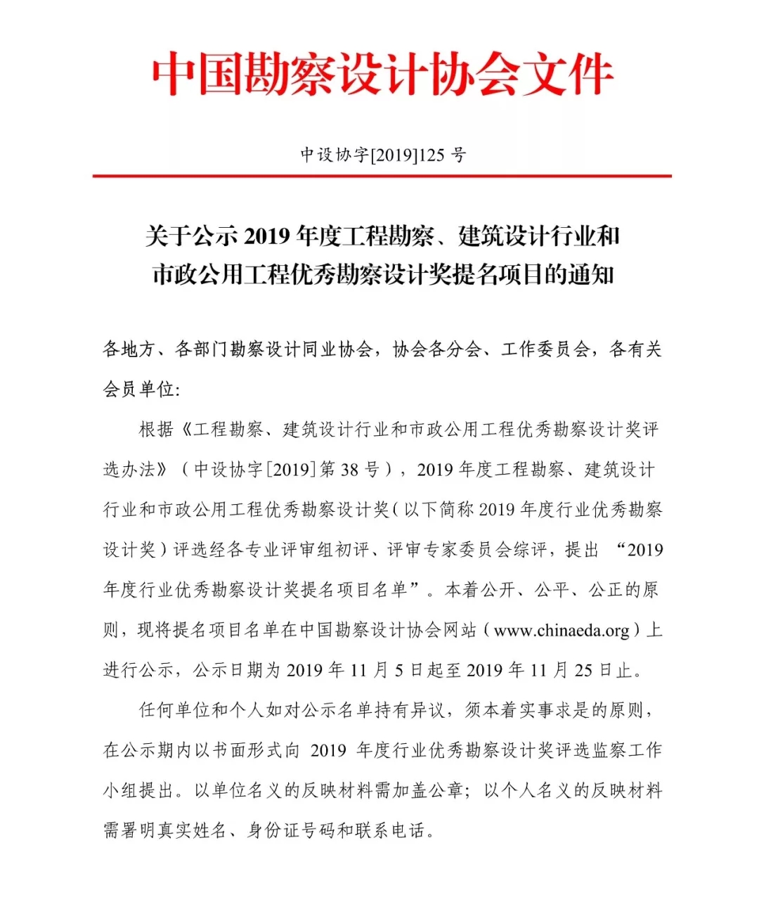11月5日,中國勘察設(shè)計協(xié)會官網(wǎng)公示2019年度工程勘察、建筑設(shè)計行業(yè)和市政公用工程優(yōu)秀勘察設(shè)計獎提名項目,共計1682項。