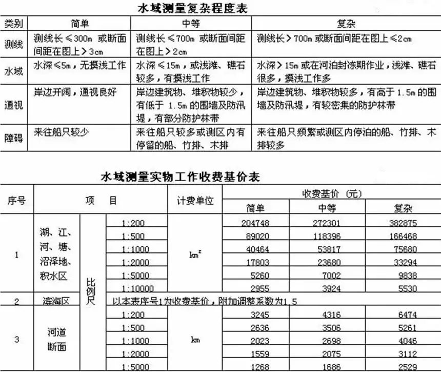注:1.單波束測量執(zhí)行通用工程勘察水域測量收費標準;