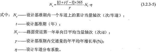 6 瀝青路面設計基準期內一個車道上的累計當量軸次應按下式計算: