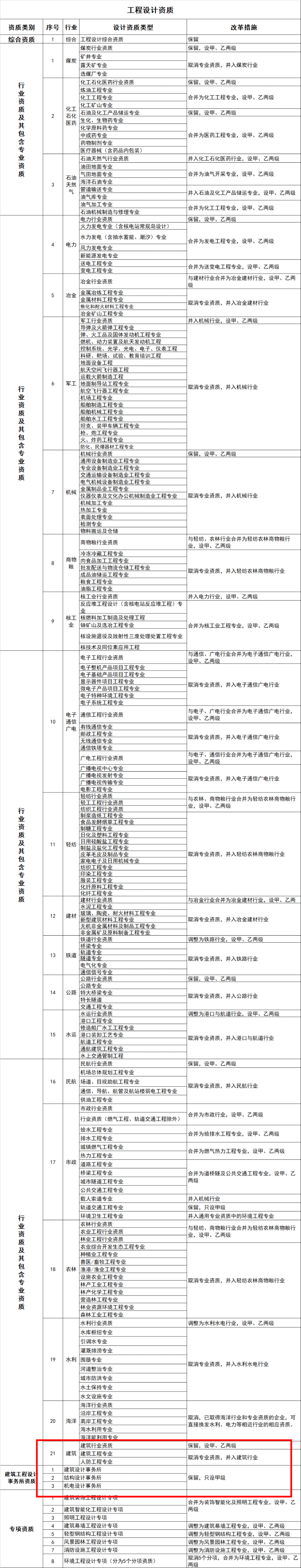 2、工程設計資質。保留綜合資質。對部分行業資質進行整合。