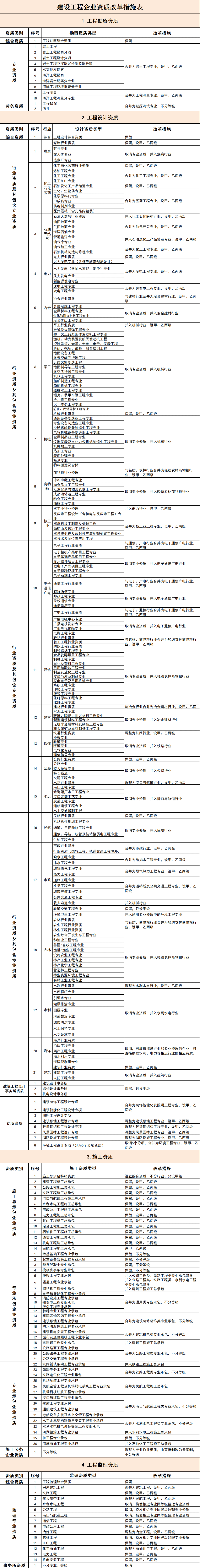 取消其他行業的專業資質,并入相應行業資質,原甲、乙級專業資質并入相應等級的行業資質,原丙級專業資質并入乙級行業資質。