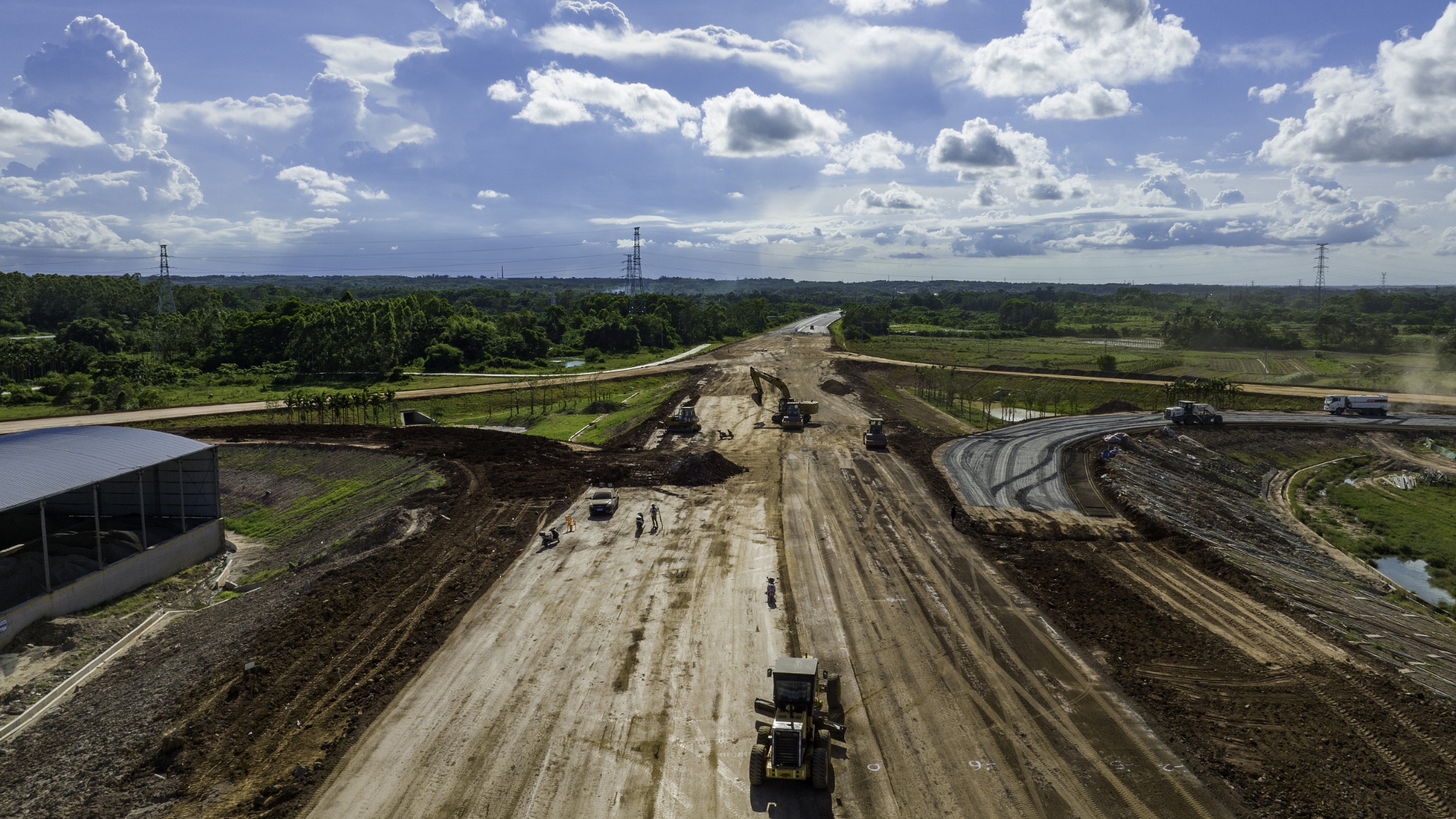2022年6月25日,海南定安,國道G360定安至澄邁段公路項目加快建設(資料圖)