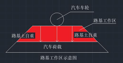 路基工作區:是指汽車荷載通過路面傳遞到路基的應力與路基土自重應力之比大于0.1的應力分布范圍。