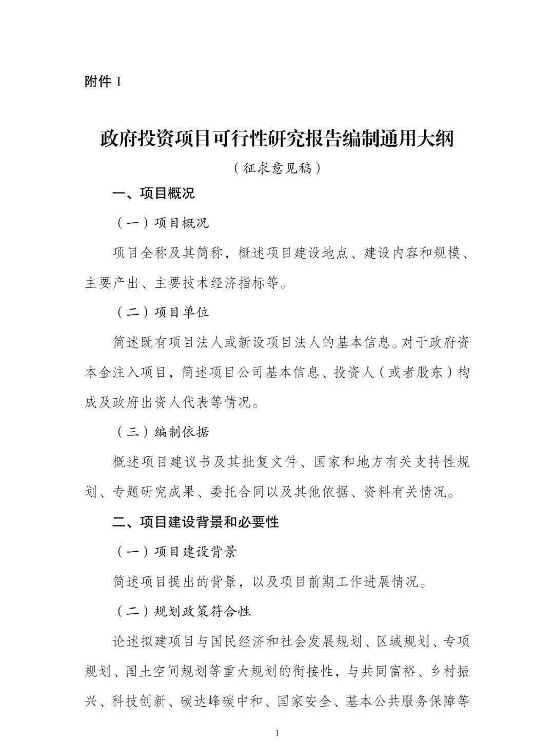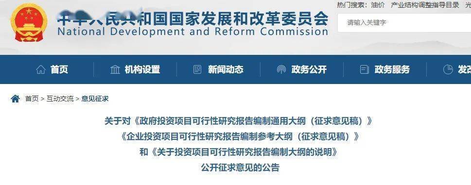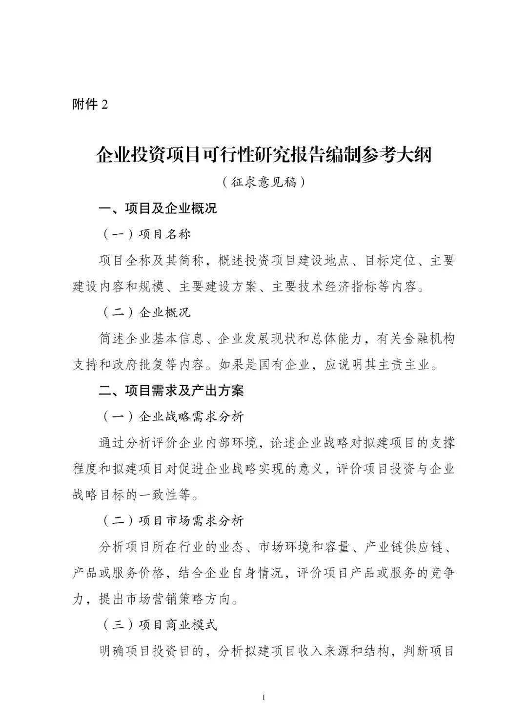 重磅!國家發改委發布政府和企業《投資項目可行性研究報告編制參考大綱》意見稿