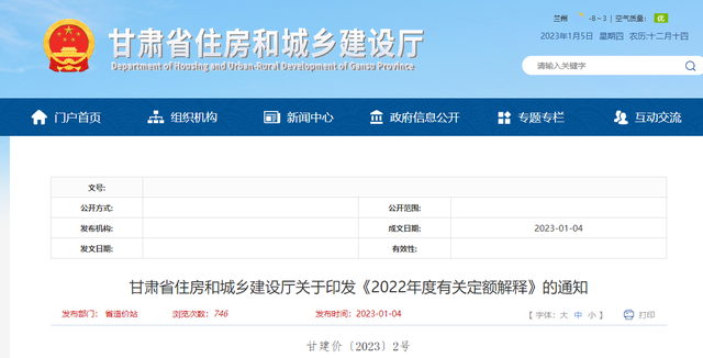 近日,甘肅住建就工程定額印發了一份詳細的解釋通告。