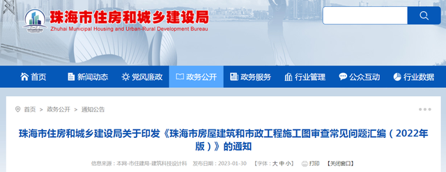 為提高我市施工圖設計及審查質量,我局組織編制了《珠海市房屋建筑和市政工程施工圖審查常見問題匯編(2022年版)》,現予以印發。