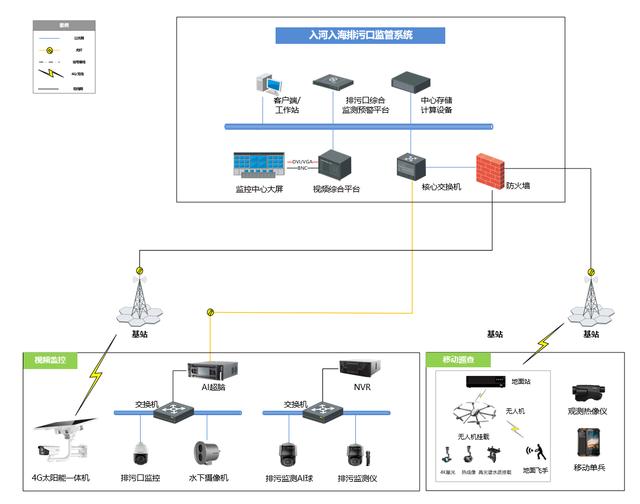 對排污口排放的受納水體采用排污監(jiān)測儀進(jìn)行水質(zhì)在線監(jiān)測。通過 4 G 太陽能攝像機(jī)、水下攝像機(jī)等設(shè)備全天候?qū)崟r(shí)監(jiān)測排污口排污狀況,發(fā)現(xiàn)違規(guī)事件及時(shí)告警。通過無人機(jī)對河道情況進(jìn)行立體化巡查,并可搭載高光譜水質(zhì)掛載,實(shí)現(xiàn)河道水質(zhì)指標(biāo)反演。通過 單兵 、觀測熱像儀等設(shè)備 , 進(jìn)行排口移動(dòng)巡查、取證記錄 。