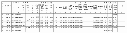 智城一路為避開K1+110處的民宅,采用了壓縮人行道、非機動車道及側(cè)綠化帶的方法,為避開K0+660處建筑物、K1+400~K1+900處茂名第一中學(xué)及茂名職業(yè)技術(shù)學(xué)院圍墻、K2+380~K2+580處村莊、K3+500~K3+800處村莊、K4+200~K4+300處村莊、接順K4+930處現(xiàn)狀新湖路及終點處325國道預(yù)留路口位置,共設(shè)置了7個轉(zhuǎn)點,具體的平曲線參數(shù)如下表所示: